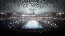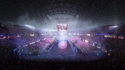 The form follows a radial geometry that organizes audience, athletes, media and logistics on distinct routes. Each path operates independently, ensuring safety and clear movement at all times. The arena accommodates 22,500 visitors with compact tiers, providing direct sight lines to the central field. The lower levels contain training, service and technical areas, while upper levels integrate food zones, lounges and control rooms.