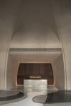 In this showroom, we try to bring the visitors back to 1966 by reimagining the ceramic firing process. Stepping into the showroom, visitors will be greeted by a grand dome that mimics the shape of a kiln with a wood-textured wall on the back of the front desk. When light projects from the bottom floor, it creates a visual movement of the fireplace effect with the wood texture, creating a simple atmosphere with the theatrical, artistic beauty of nature. The main showroom walls are decorated with a rough kiln surface texture and color, creating a strong but soothing color and texture comparison between the surroundings and the display pieces.