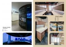 Above the reception and showroom area, the cafeteria and upper-level offices provide semi-private zones for clients and staff, offering spaces for meetings, remote work, or informal interaction. The layout is fluid and efficient, ensuring a balance between public hospitality and professional functionality.