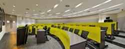 Ceilings: Suspended ceilings with linear lighting in public zones; acoustic ceiling tiles in office/admin areas