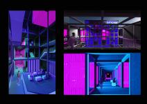 Cyber Aesthetic and Digital Awareness The atmosphere reflects the dark and uncanny aesthetic of "cyberspace." The raw texture of underground exposed concrete merges with neon (cyan/magenta) data lines and steel grids to forge a "High-Tech / Underground" identity. This atmosphere alters the user's perception of reality, enforcing focus. Deep within the structure, Simulation Cabins and Ethical Hacker Labs allow visitors to evolve from passive victims into active defenders protecting their own data.