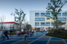 The E-shaped layout facing the interior of the school forms two large semi-enclosed courtyards, creating a courtyard-style environment. Meanwhile, the eastern corridor presents a continuous urban facade along the city road. The school's southern entrance plaza faces the main city road, serving as the primary gathering area for parents dropping off and picking up their children. This design also provides an effective buffer to the city's main road, while a secondary entrance is set up on the eastern side. The two inner courtyards face the sports field and, together with the main landscape axis of the southern entrance, form recreational spaces for students, creating a comfortable, relaxed, and pleasant campus environment.