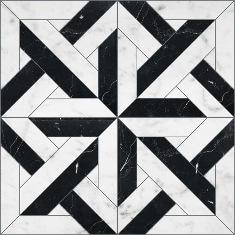 With Élite Mosaic, Devon&Devon has recaptured the traditional art of the mosaic through a premium collection of marble floorings. The new patterns feature arabesque motifs and optical geometries, including twists, perspectival cubes, diamonds, and chequerboards, and multiple elegant modular combinations can be created thanks to the contrasting and matching colour combinations of the marbles in the catalogue. The collection is made with a selection of fine materials from highly skilled and qualified craftsmen .