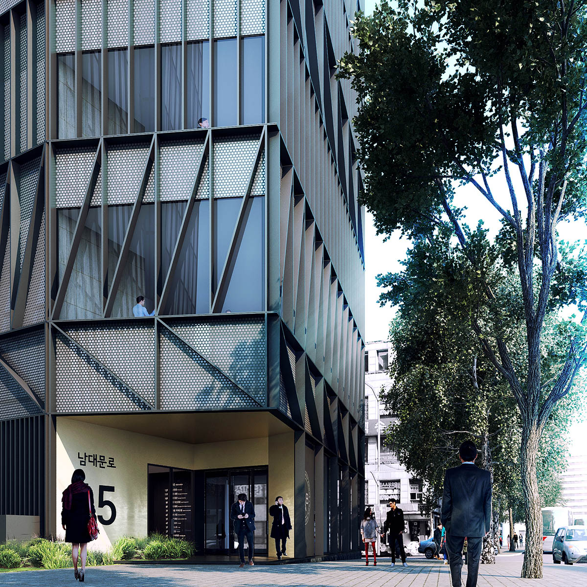 Entrance of Namdeamun Office Building is emphasised by its setting at the corner.