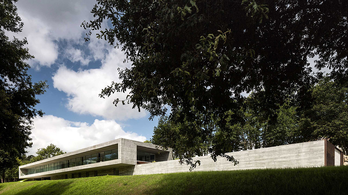 The raw nature of concrete assumes a fundamental role in this connection between the natural and the built, creating a harmonious landscape in the relation of the object to the place and the landscape as a whole. Both seem to communicate as if they were always there.