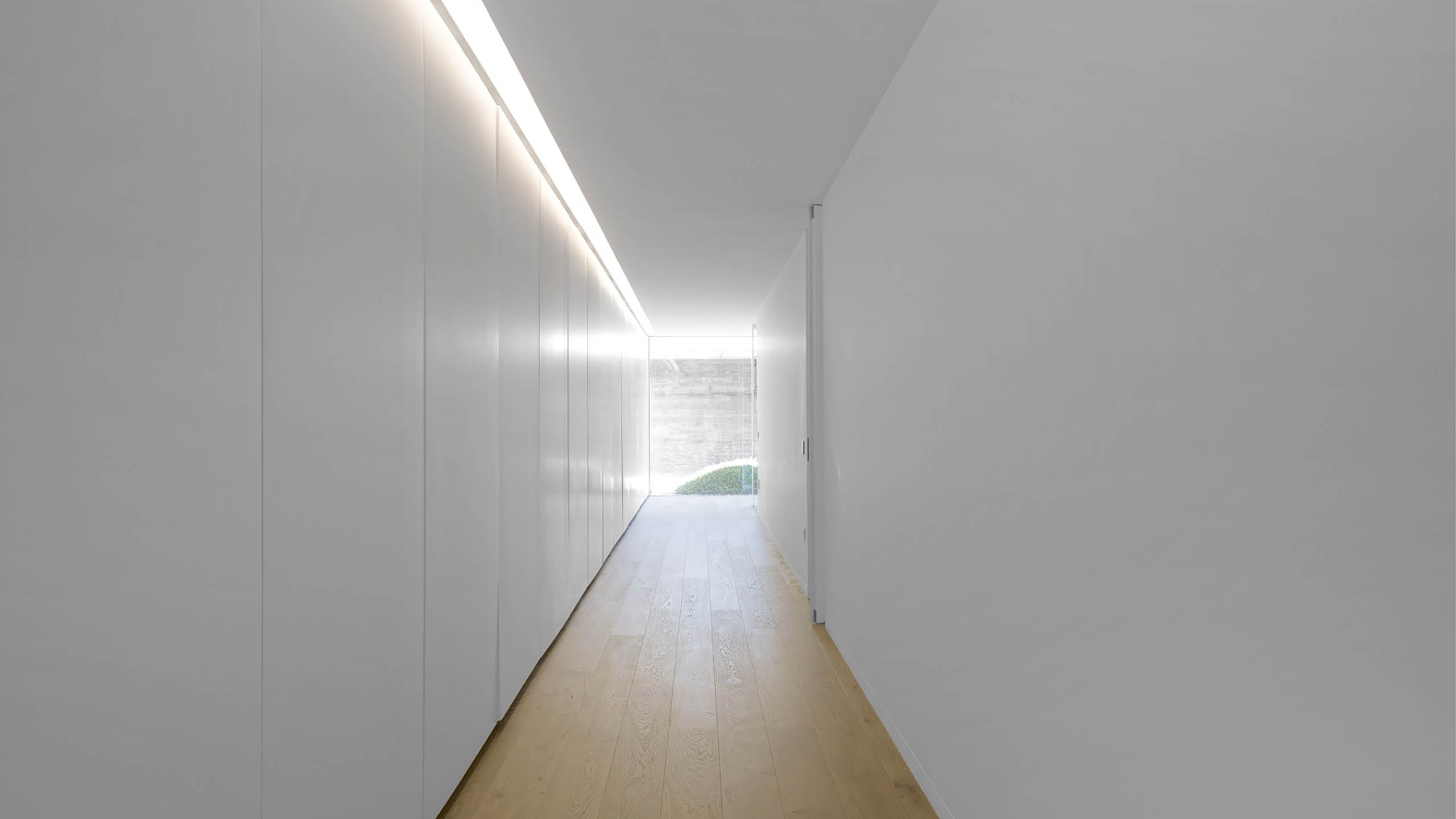 One of the most interesting aspects of the Sambade house project has to do with the interior / exterior relationship. On the one hand the raw and heavy aspect of the gray concrete, on the other hand, the lightness and clarity of the interior space, in a perfect and delicate connection.