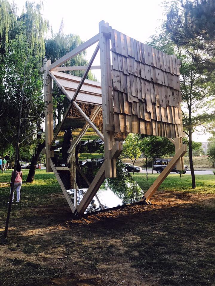The Turkish architect, Arman Akdogan, with the Tangled Up Pavilion brings an architectural intervention in the park, breaking the green monotony. Paired with two opposite directional seat slopes facing one another, it encourages encounters and socializing. Jiang Chu, from China, with Twisted Solidity, positioned just in front, presents a sculpture where architecture’s purpose is socializing.