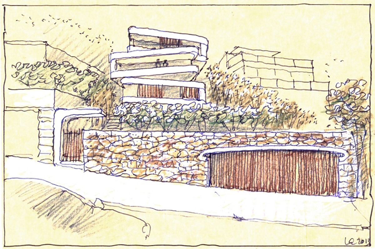 This home was designed following a reading of The Importance of Living by Lin Yutang, which is a must read in order to gain a greater understanding of the dwelling culture in China, this explains the "Dragon" path that meanders to the front door and is not just necessary to make climbing the steep hill less laborious but also to soften the approach to the house and abandon the straight geometry of the road.