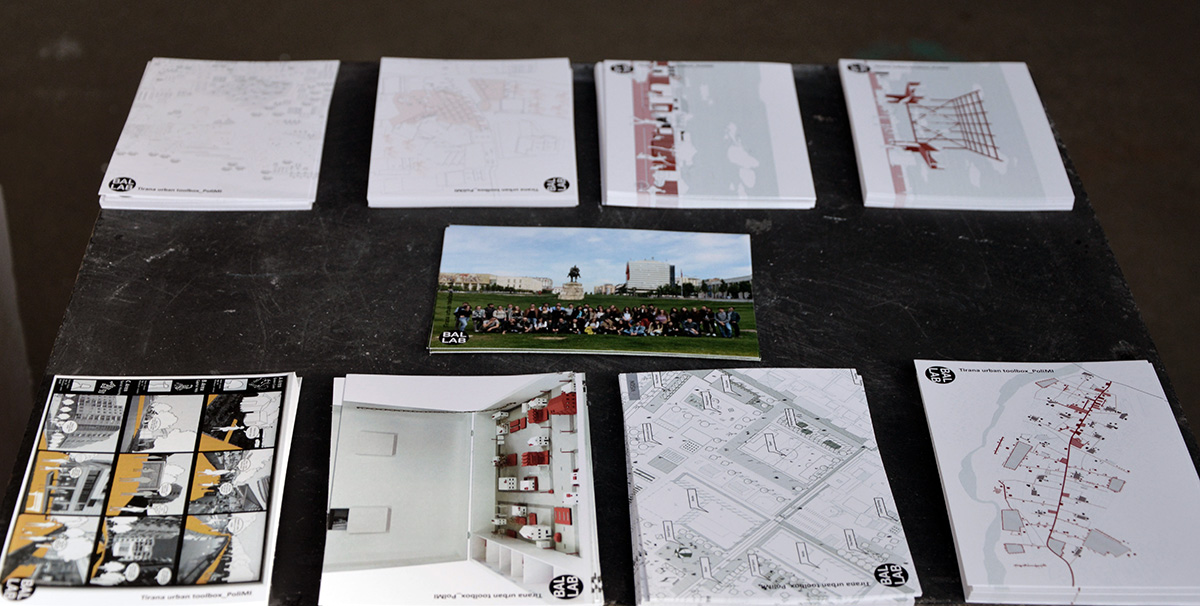 Polytechnic of Milan displayed projects of third-year architecture students (2015-2016) under the name "Tirana Urban Toolbox". The students designed several postcards for their projects, and produced twelve interactive architectural models in the shape and size of wooden suitcases.