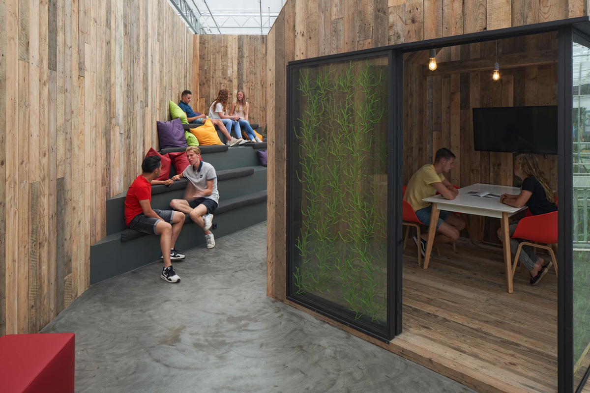 With an estimated number of 25,000 visitors per year, the building is considered a national and international destination for people working in greenhouse horticulture. Companies from all over the world come to the campus to have their innovative greenhouse and horticultural products tested and to look for new ideas to help them develop their work. The building combines education, business and research under a single roof all working together collectively.