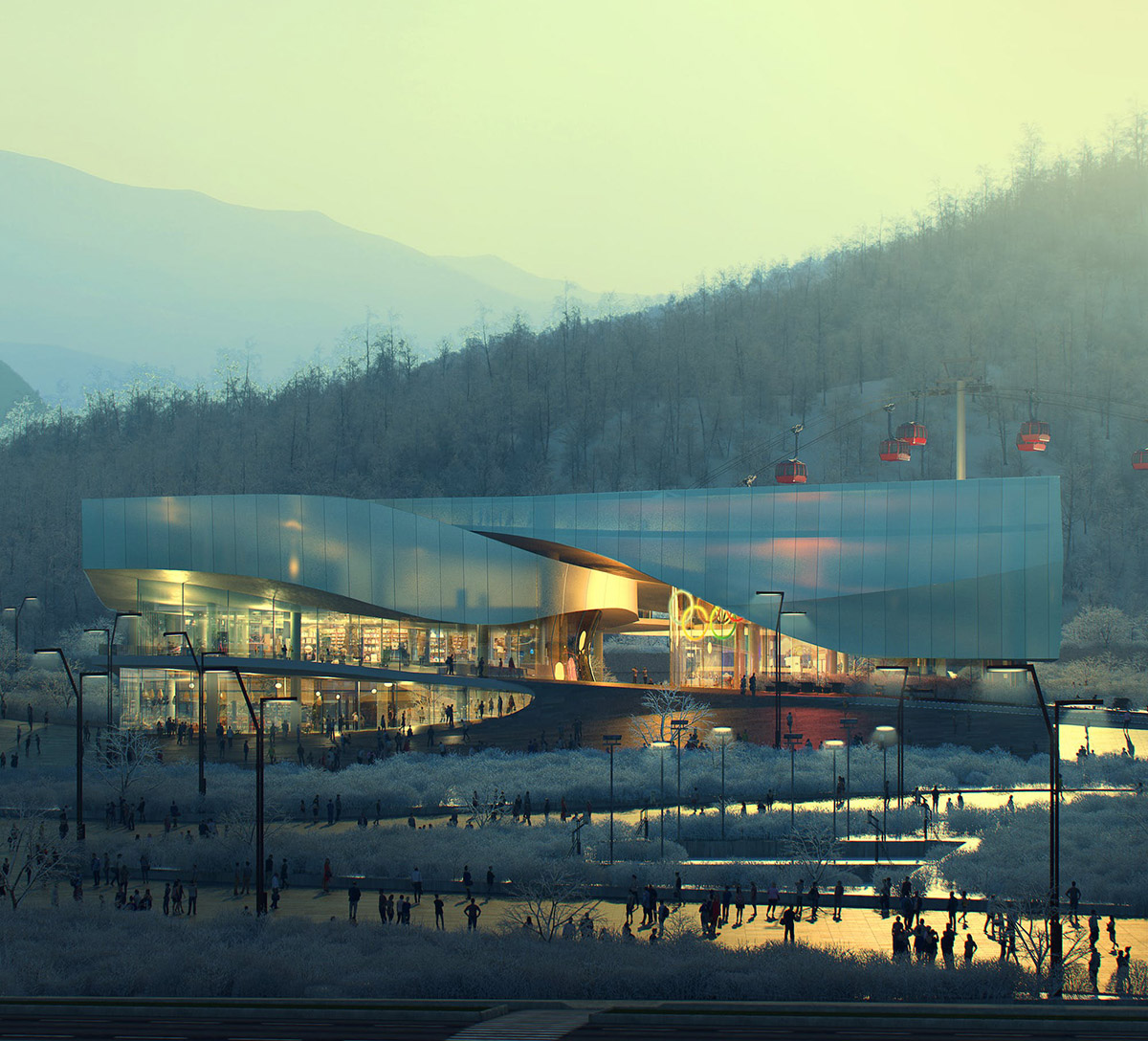 For Chongli, this is a critical opportunity to become the center of development of winter sport in China, utilising it’s natural mountainous resources and giving back long term opportunities for the rural region. It is in this spirit that the Chongli local government conceived a plan to revitalize the town center with the addition of the world’s first Winter Sports Museum and Academy to best convey the Olympic Spirit to future generations. Following an open public bidding process, maison h was selected for a competition with two other teams for both the building design and town center redevelopment.