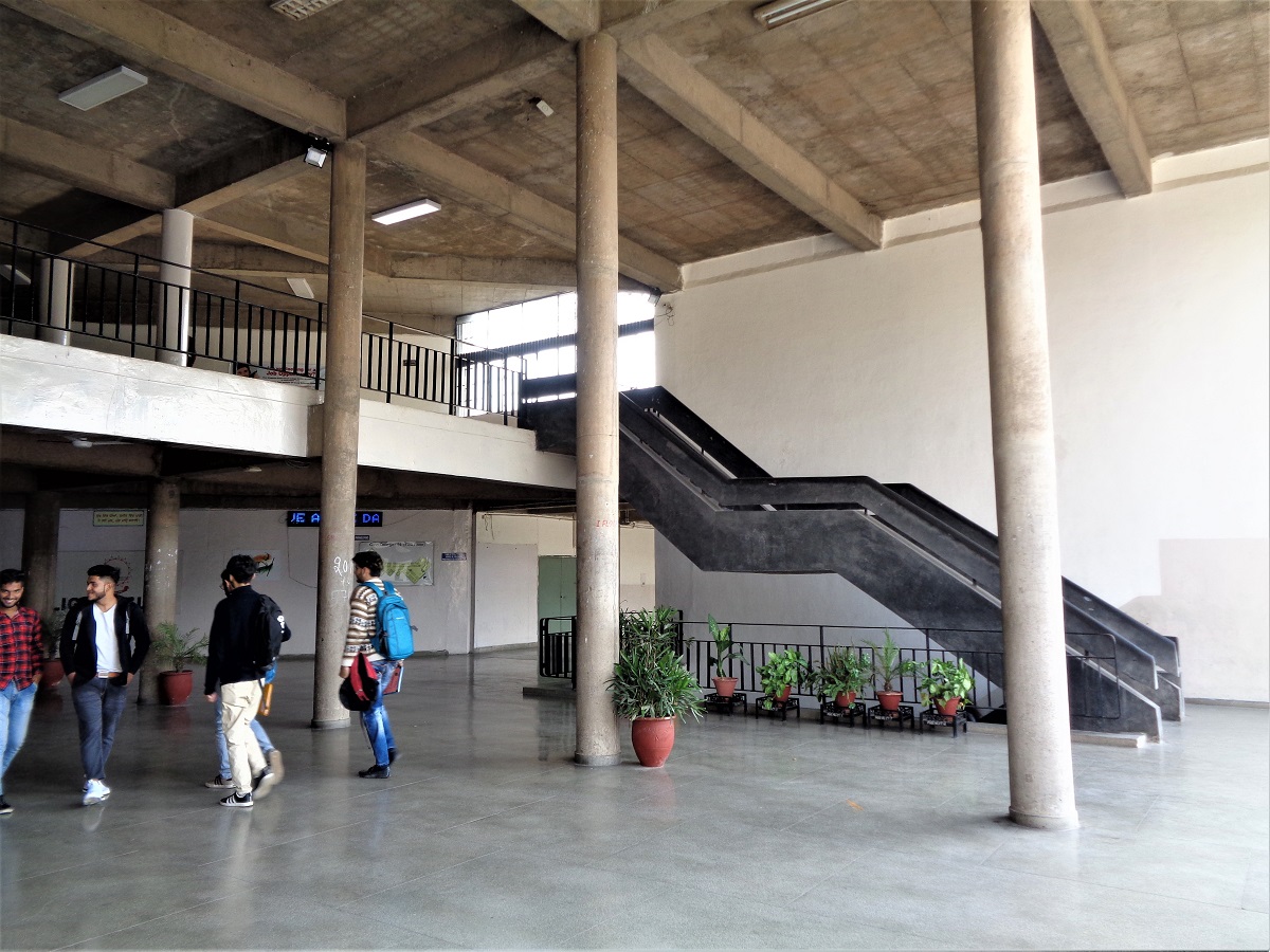 The Chandigarh Institute of Hotel Management and Catering Technology, Sector-42, is a compact complex designed around a central courtyard and to accommodate a variety of functions together. The architect ingeniously handled the project concerning functional clarity, aesthetic appeal, and truthful expression of all structural elements on the exteriors. The build has been designed in exposed brickwork interspersed with some elements in white plaster. From its visual outlook, one can easily judge the influence of Pierre Jeanneret on RS Lall’s architecture.