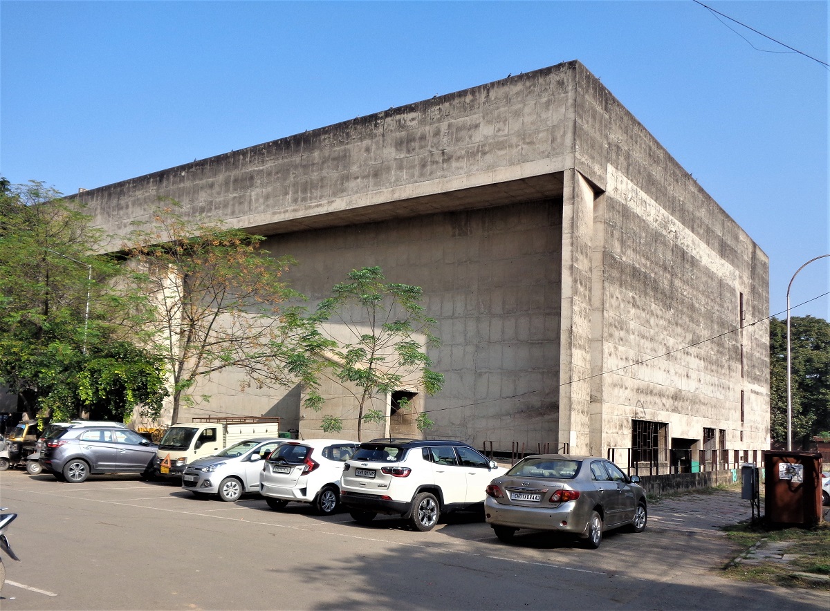 The Government Multi-Specialty Hospital, earlier known as General Hospital in Sector-16, is a large, linear and high-rise structure. The exposed-concrete-faced building with its topmost storey projecting out on all sides, making it a conspicuous landmark on the crossing of two important city roads – the Madhya Marg and the Udyan Path. The building is oriented in the north-south direction and is placed at a setback from the busy crossing. Designed by RS Lall in 1972, this building not only fits perfectly well in the urban fabric of the city but also echoes the architectural vocabulary of Le Corbusier.