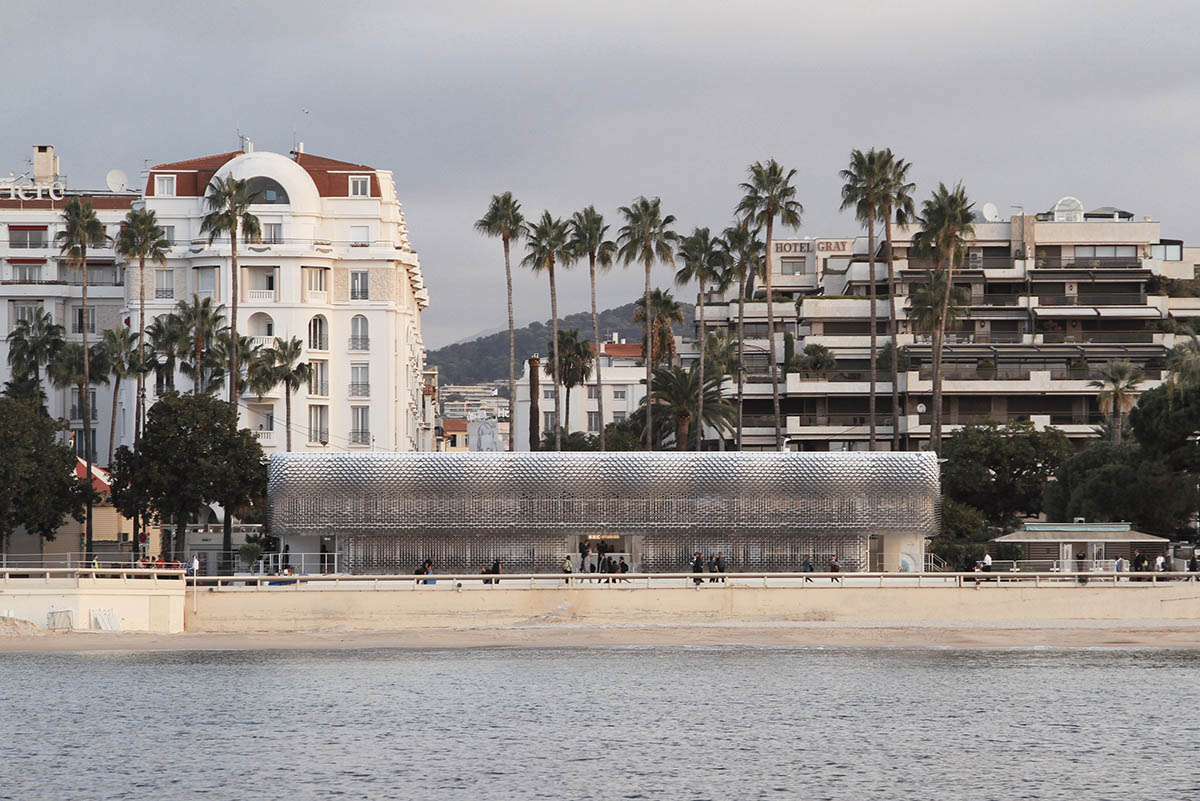 The pavilion was realized as a seminal project for the BBC Studios - a British television production and distribution company - it was in development for almost two years, and the pavilion is a large-scale organic structure located on the beach front in Cannes.