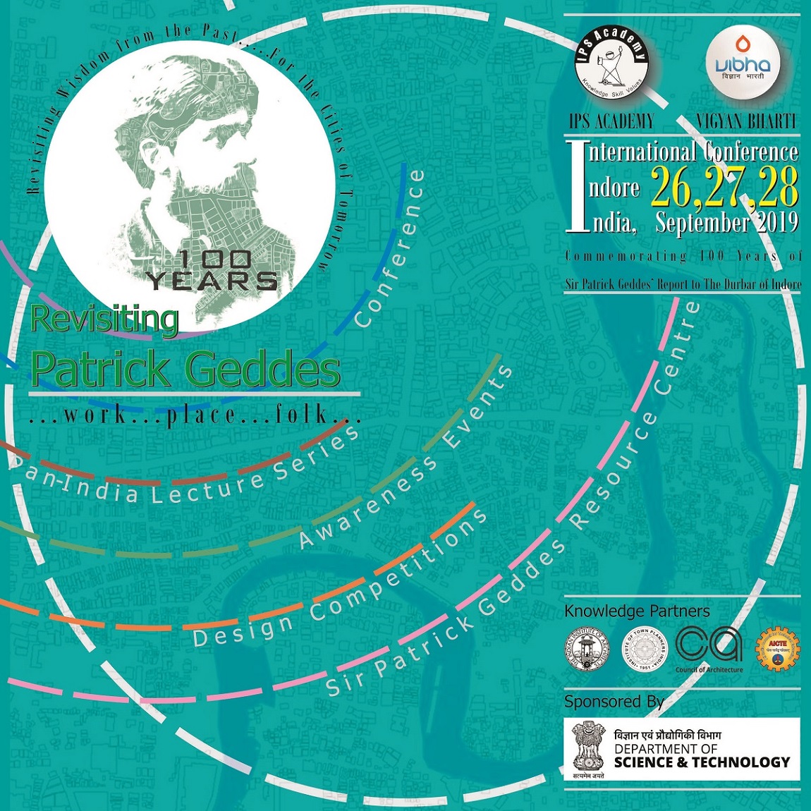 ‘Revisiting Patrick Geddes’ – A Three-Day International Conference was held at School of Architecture, IPS Academy, Indore, India on 26-28 September 2019. The conference was held in commemoration of hundred years of Sir Patrick Geddes’ report to ‘The Durbar of Indore’ and was devoted to the ideas of sustainability and the multidisciplinary learnings that can be derived from the works and life of Sir Patrick Geddes (1854-1932). Sir Patrick Geddes was a Scottish biologist, sociologist, geographer, philanthropist and a pioneering town planner. He was known for his innovative thinking in the field of urban planning and sociology.