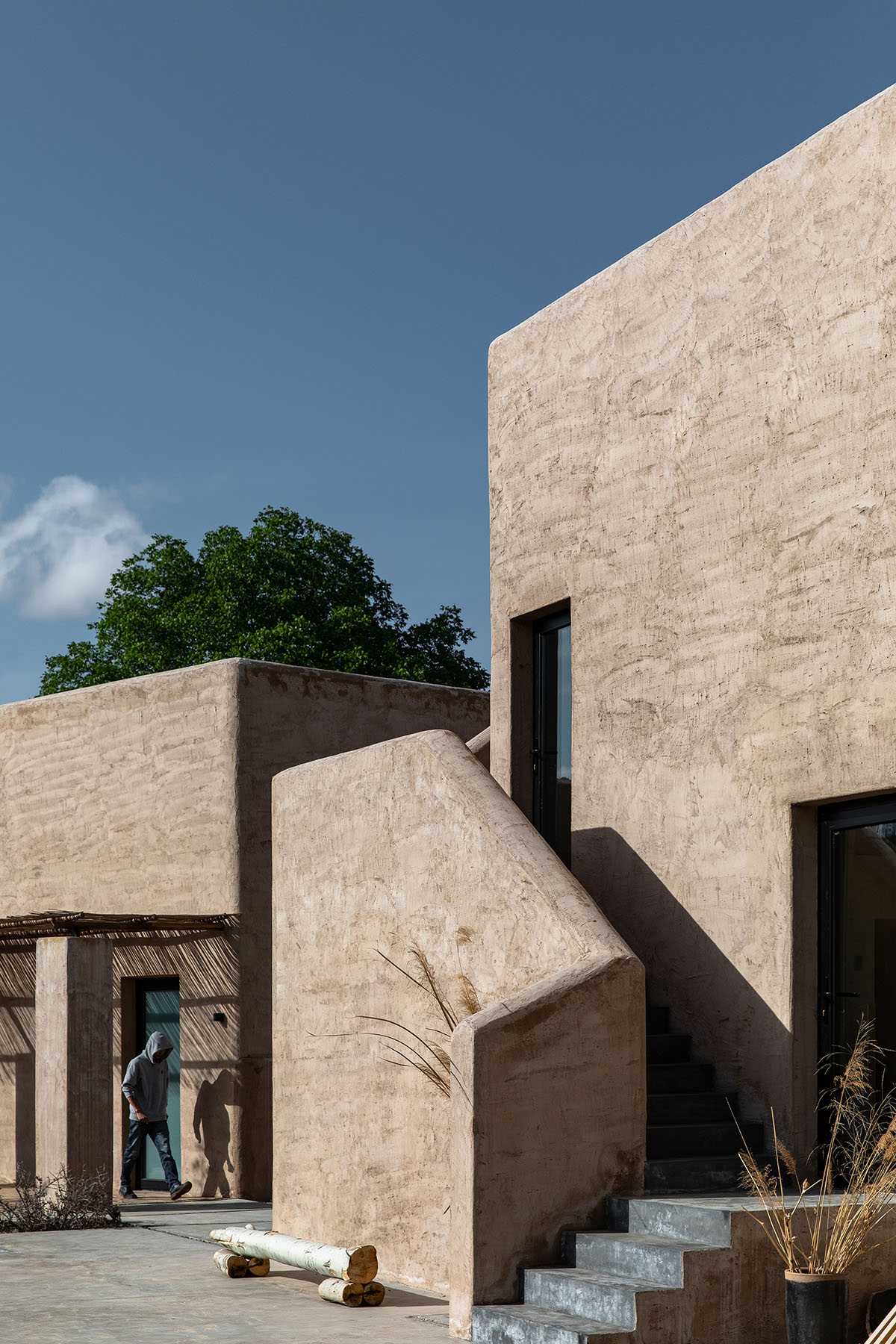 DAS Lab used a special treatment of cement mortar on the exterior walls to restore the texture of rammed earth wall from local buildings, so the architecture will look beautifully "old" after being exposed to winds and rains after a while.