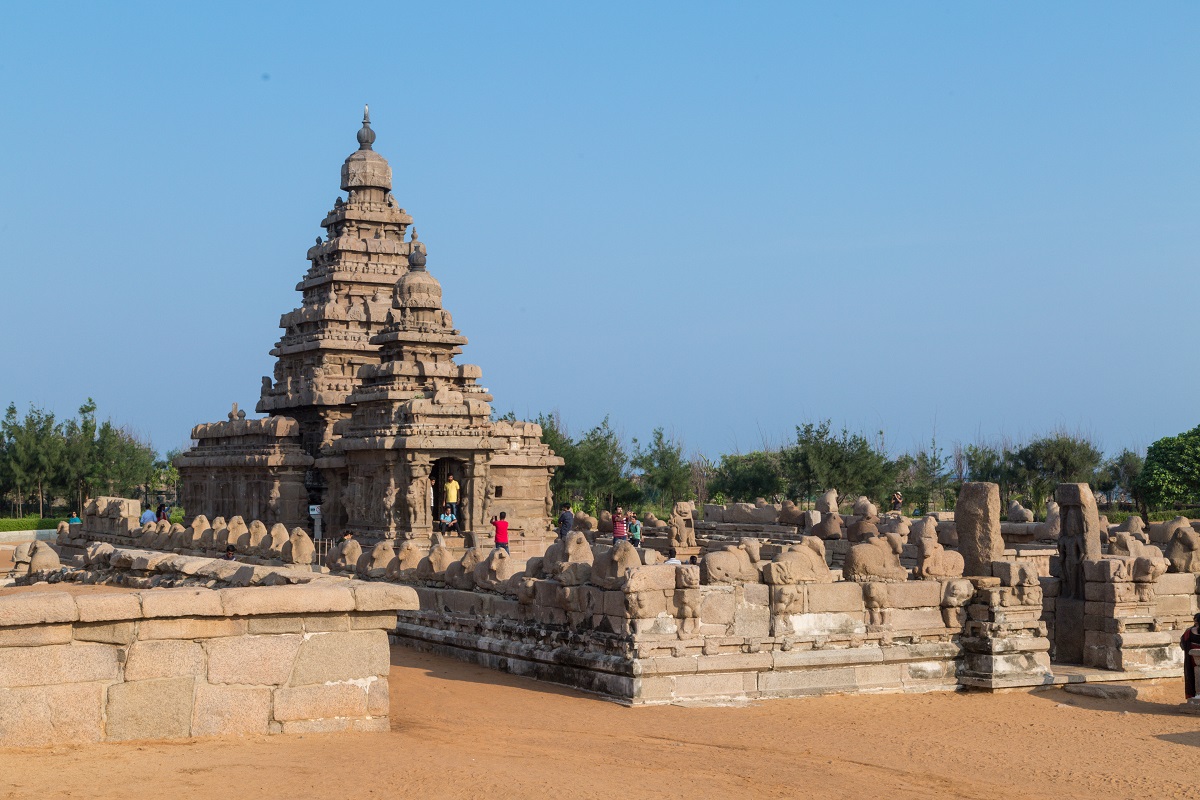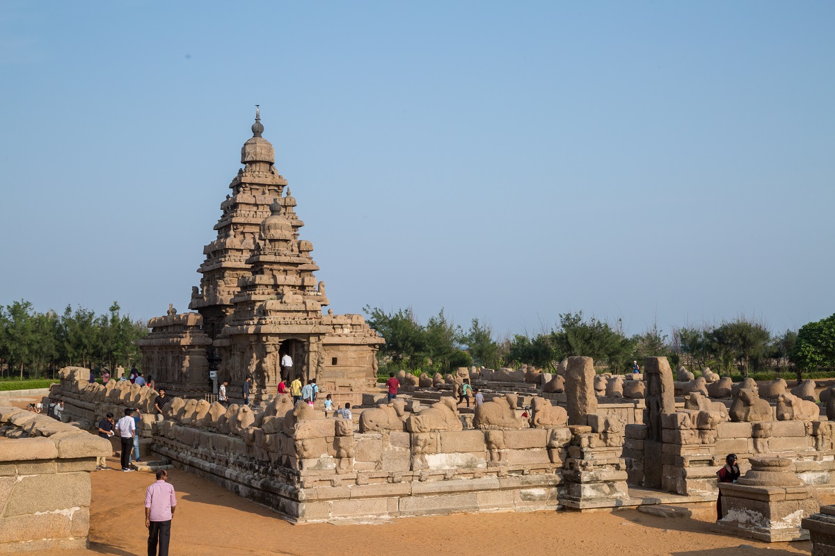 The Shore Temple is yet another marvel in rock. As its name suggests, it stands on the extreme foreshore of the ancient port of Mamallapuram. It is the lone surviving evidence in the town of the second phase of Pallava architecture, namely structural or stone-built temples. It is believed that the seafaring Pallavas carried out rituals of ocean worship in this temple.