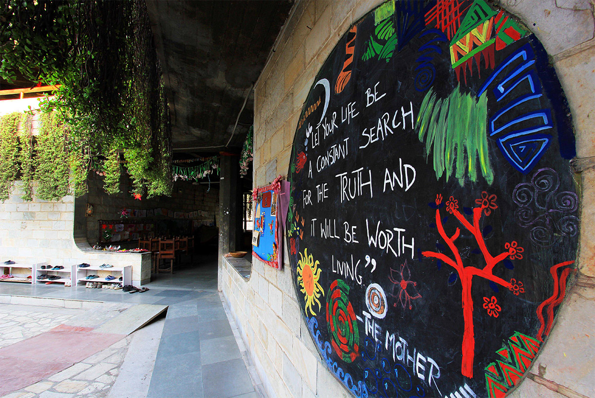 The architect's brief had definitive instructions laid out along with a tailored set of requirements. In addition to the specification of implementing a flexible design, it also included the pre-requisite of utilizing natural and honest materials. An evitable factor that unites the entire design scheme into one harmonious frame is its periodic integration of the built with the natural vegetation, which too was an integral mention in the brief. With each space blended by subtle transitions, the design emerges as ‘a bridge between heaven and Earth’- synonymous with the ideology of Sri Aurobindo.