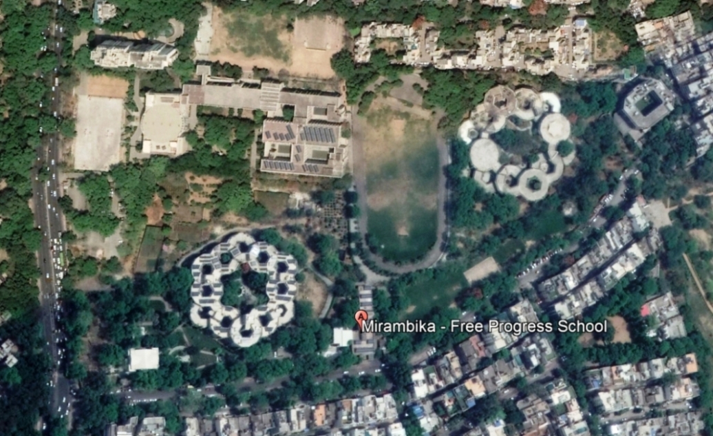 Located on the Aurobindo Marg, New Delhi; the 48,000 square metre site consists of a large playfield shared with the Mother’s International School along with the main structure on the northern side. Numerous smaller playfields have been placed adjacent to the southern boundary wall, dedicated specifically to the users of the Mirambika School.