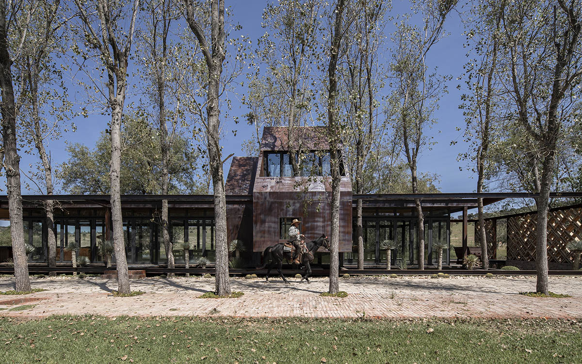 Sitting on a rectangular layout, the house is marked by a protruding corten steel volume that was designed for the family room, dining room and bar with a double height.