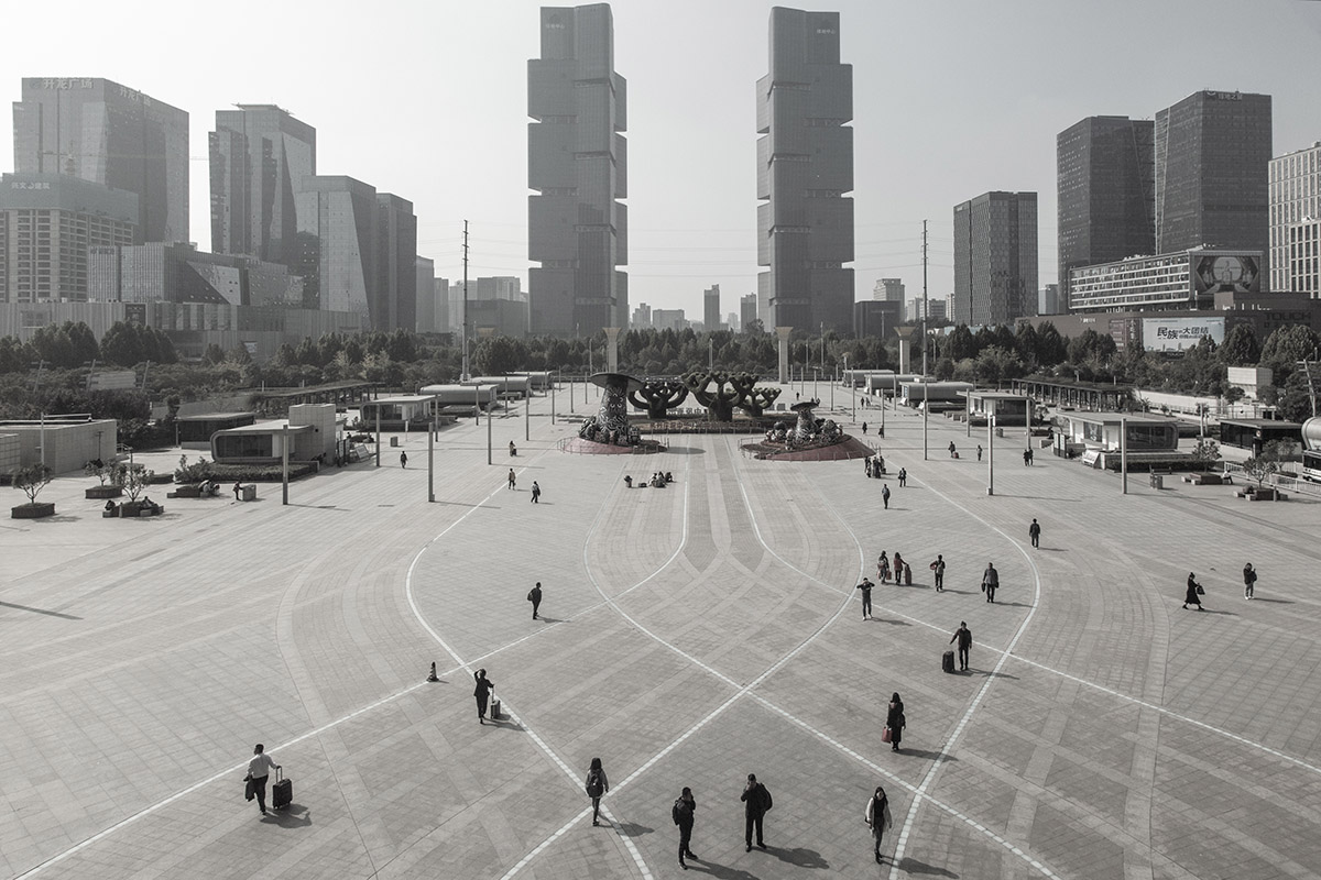 Square of the Zhengzhou East railway station, 2019, Zhengzhou, Henan Province. Image © Samuele Pellecchia.