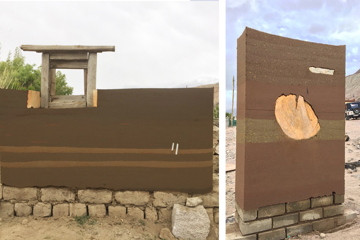 Mock-up walls in rammed earth (Earthling Ladakh) Image © Earthling Ladakh