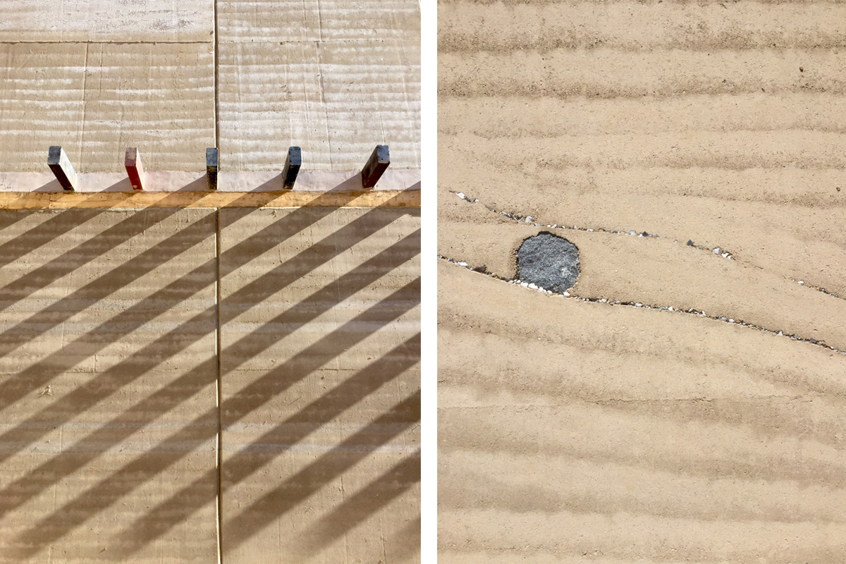 Rammed earth details (Earthling Ladakh). Image © Earthling Ladakh