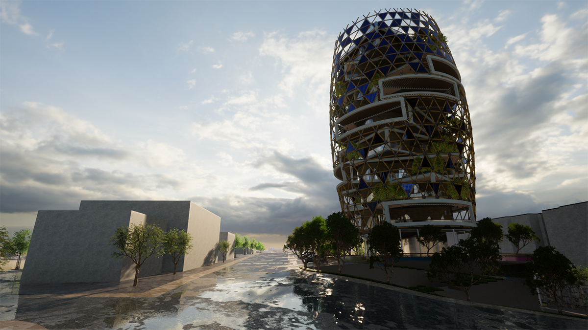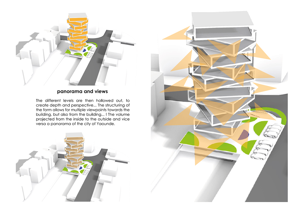 Anchored in the context (the country's emergence program for 2035) and in the face of sustainability requirements as prescribed by UN-HABITAT and in the SDGs. The objective of our project is to develop a popular, identifiable, reliable, and unique benchmark... The envisaged approach is to combine a set of artefacts that will be drawn upon to produce a useful project...! In order to produce contemporary architecture, we will revisit the concept of "Form Follow Function". And in order not to end up with "another beautiful object", we will instead design a system... A system is a set of elements interacting with each other according to certain principles or rules; or an abstract whole whose elements are coordinated by law, a theory: the conceptual framework being in our case the one indirectly prescribed by a meeting between the principles of biophilic architecture (nature as a source of interpretation) and iconic aesthetics... It is, therefore, a question of constructing a built ecosystem that frames the functional opportunities described by the "brief", but above all, that projects its own know-how, as a basic model to be imitated scientifically to improve the built landscape.