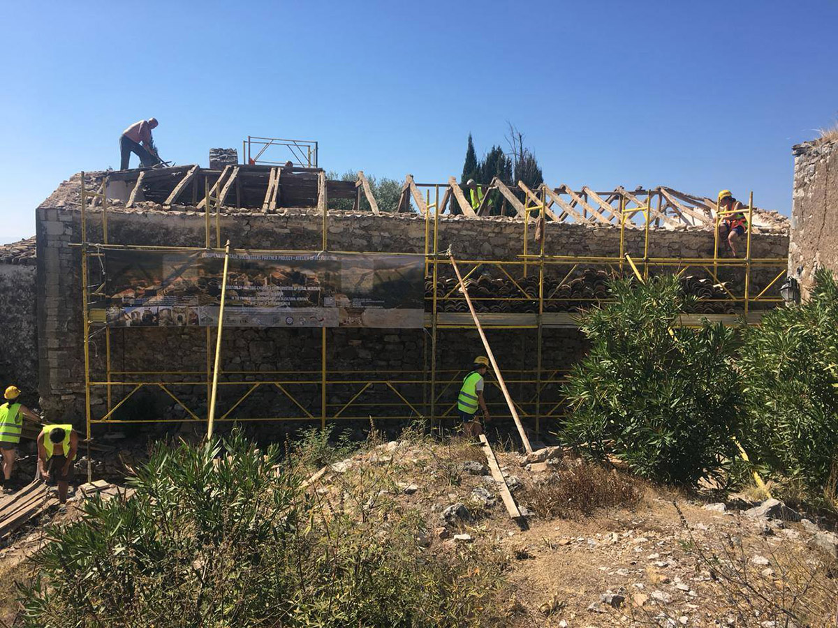 The group’s days in the Historic Town of Himara were divided into working hours and educational activities - including presentations and tours. The structure of the roof was taken down in the first days which was an intensive work for the volunteers, but it was all managed through the help and expertise of the master carpenters, who helped guide in the reconstruction of the wooden roof while instructing the team with local techniques. The project was unique in the sense that it was a fundamental part of the local community. As the volunteers themselves recall, many would visit the siteworks and express their wishes, slowly recovering their space.