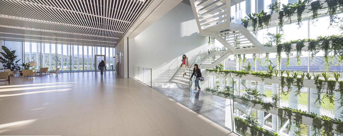 The design, through Batlle i Roig Arquitectes, is driven by sustainability and aims to obtain a gold LEED certification. This eco-efficient building is built with recycled materials and employs a high efficiency building envelope design, allowing 45% reduction in electricity. It also utilizes rainwater harvesting system for irrigation and toilet flushing thereby reducing water consumption by 30%. At the same time, native and low-maintenance landscaping is incorporated at the surrounding open spaces into the inner courtyards.