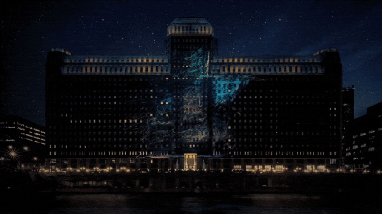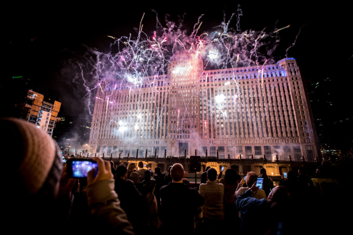 One of the most iconic buildings along the Chicago River, the Merchandise Mart, is now the city’s largest art canvas. Launched on September 29, 2018, this permanent piece of public art is a 2.5 acres digital projection across the riverfront facade of Chicago’s 1928 limestone building.
