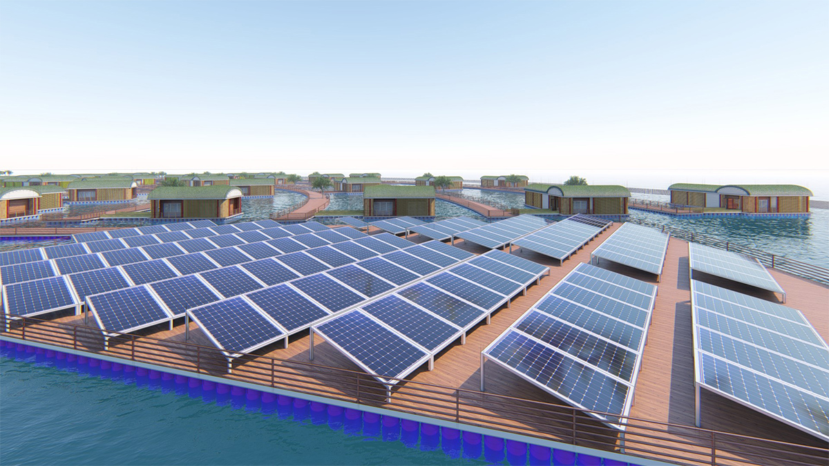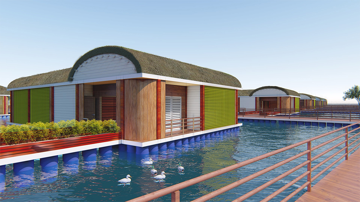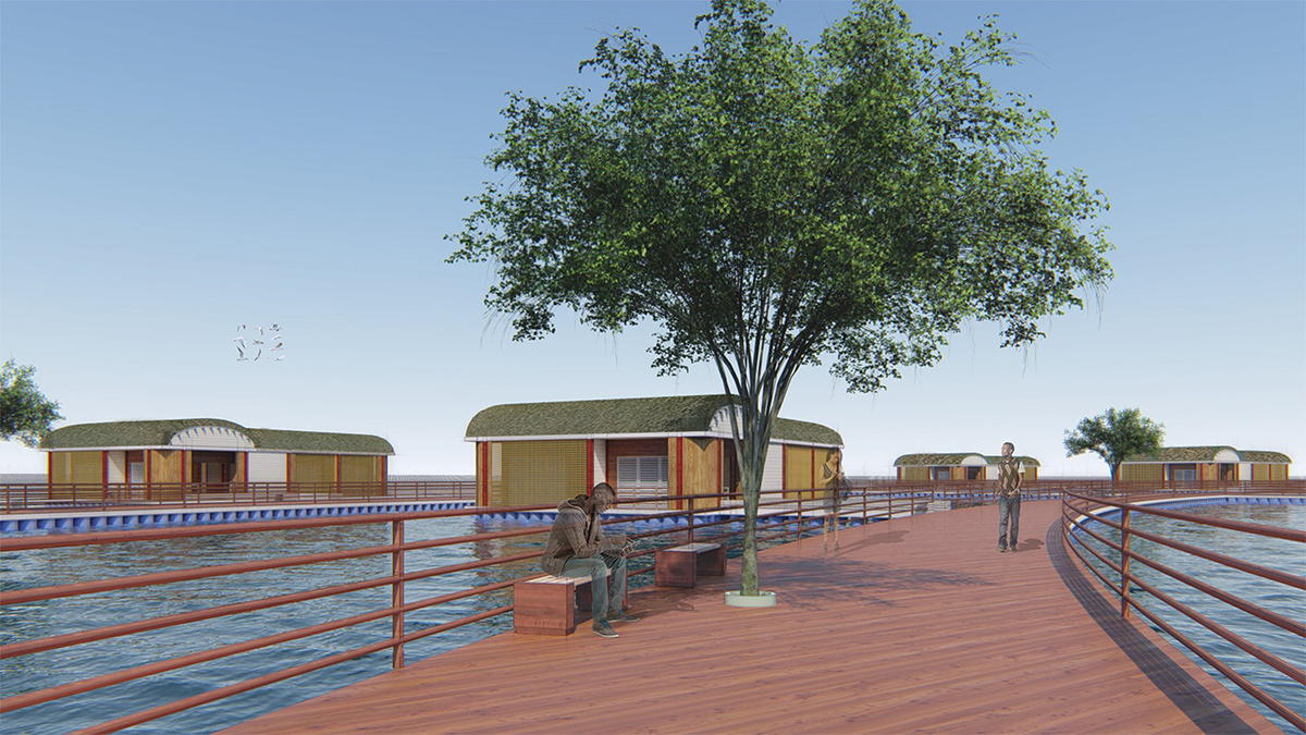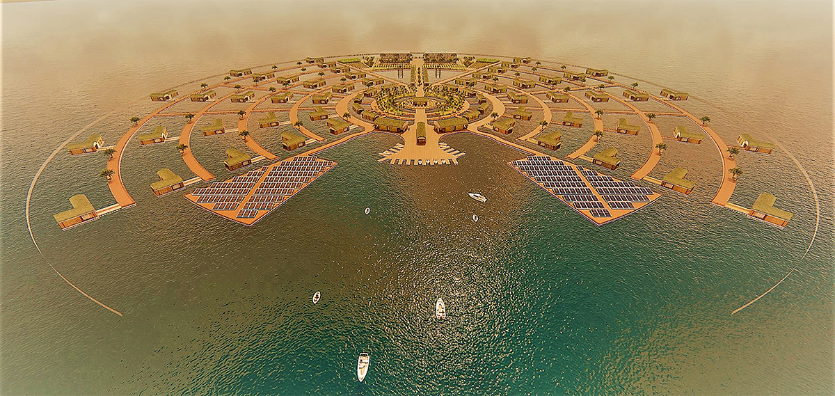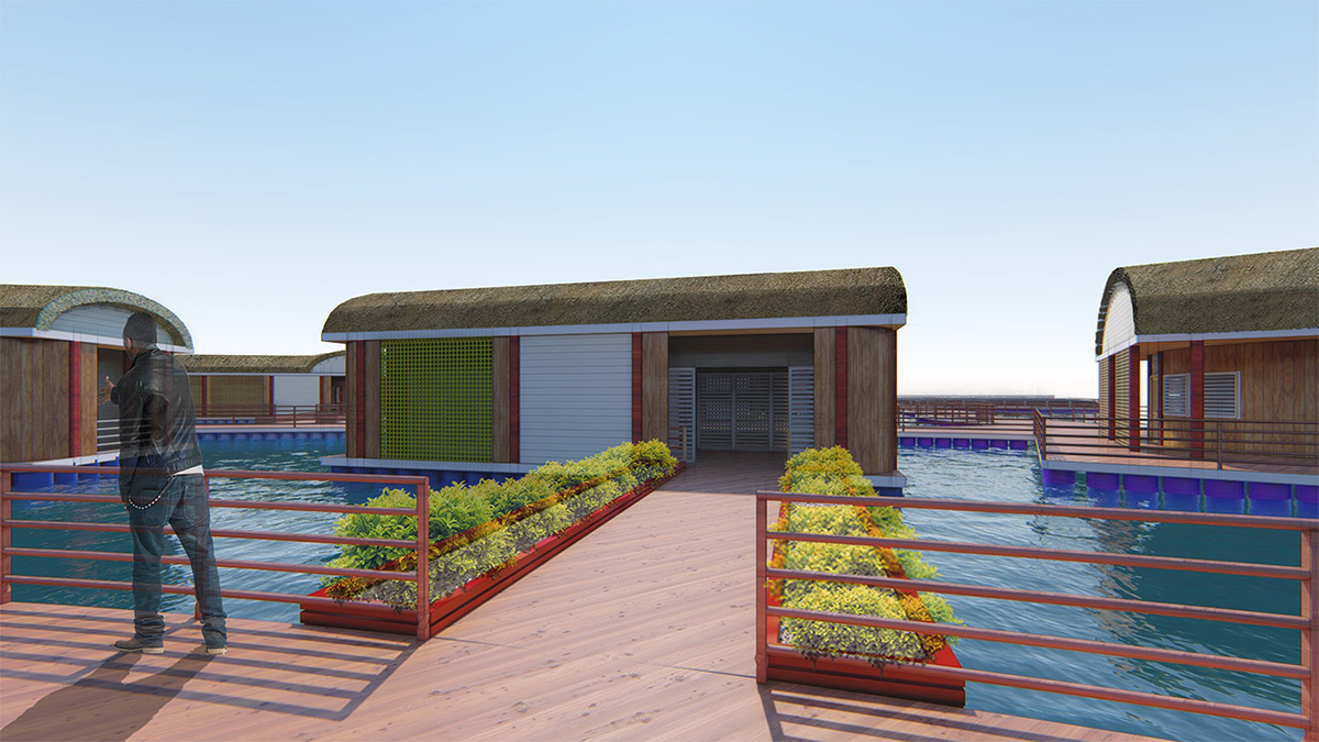 In addition to the safety aspect of the project, economic activities are also taken into account, especially as it is built on the water, the fishermen's working area. Based on the quotation of the town planner Fréderic BONNET who says "The city of tomorrow cannot be made without agriculture", the city has been provided with gardens. These will allow the inhabitants to grow their own food. That said, the project is developing around fishing and farming activities. The housing estate promotes living together and offers a pleasant, warm, lively and reassuring living environment. It is designed to be practically autonomous, so as to depend as little as possible on the mainland. This floating city project is part of a bioclimatic architectural approach in relation to the water. The concept of the proposal lies in the creation of an environmentally friendly place to live, with controlled loads and zero fossil energy.