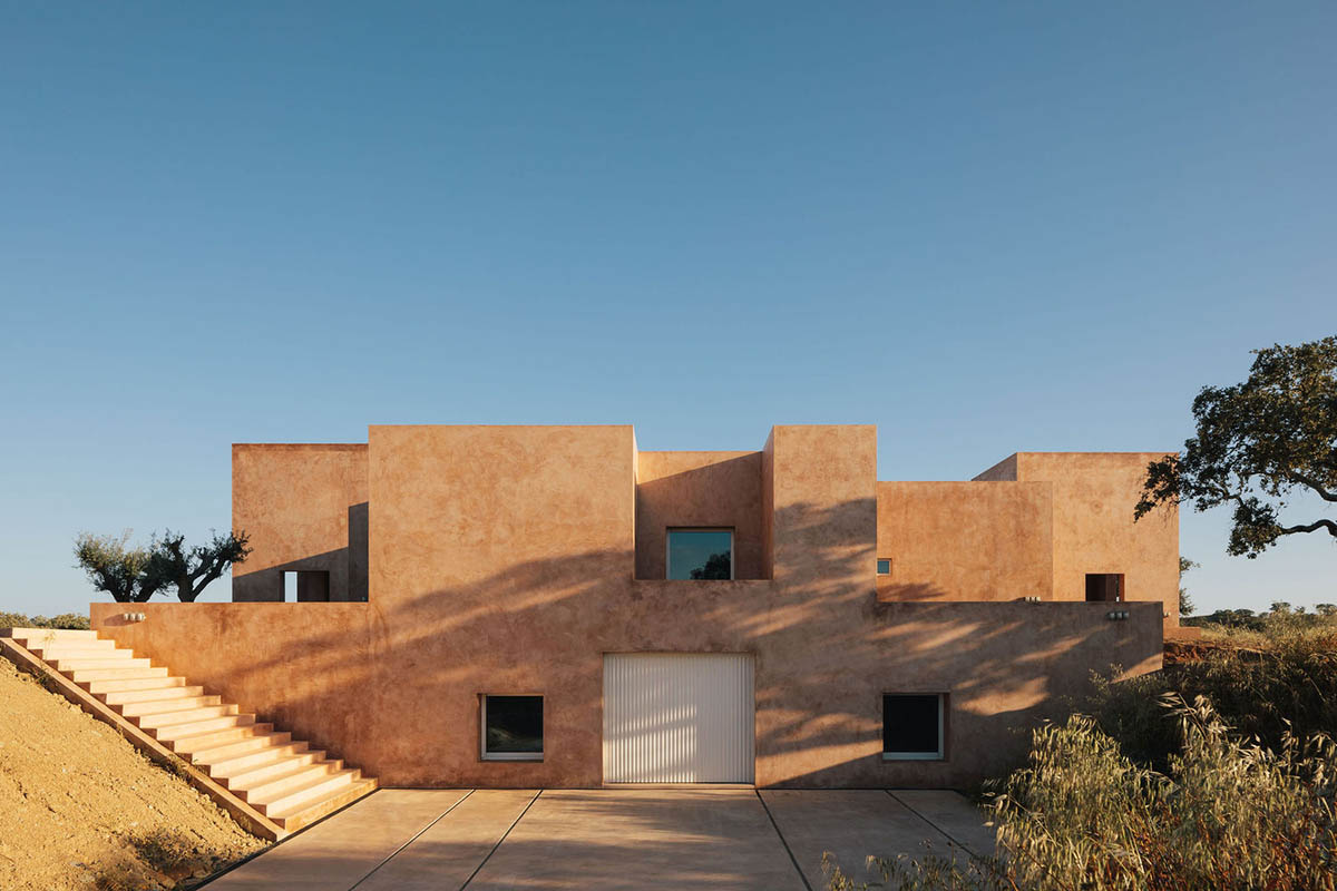 Lisboa-based architecture practice Bak Gordon Arquitectos has completed a house that acts like a castle with its recessed volumes on an arid landscape of Alentejo, Grândola, Portugal.