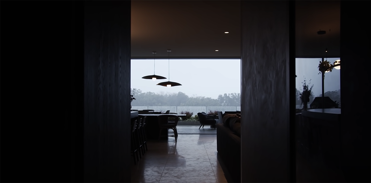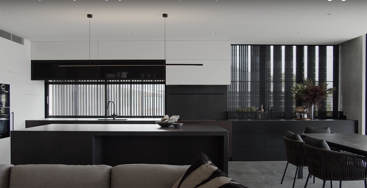 The design is part of the landscape. It sits right on the river. A lane is on one side and a river on another side. It is a home with two levels. Every level is surrounded by a garden especially the upper level. As the client came from a rural property where gardening was such a big passion for her, Harley had to incorporate the garden into the building. The main part of the journey in the design process for him was to reduce the bulk and scale of the building. So, the big horizontal elements are classic treatment from mid-century Japanese design. Using dark-stained Accoya timber, screens and layering, and wrapping in the vegetation have helped the architect to reduce the bulk and scale.