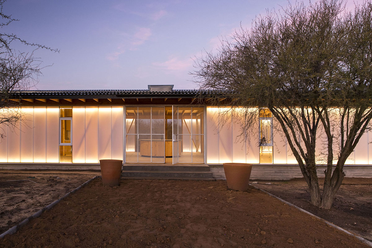 By using semi-translucent panels, the lighting makes the building stand out as a landmark in the landscape.