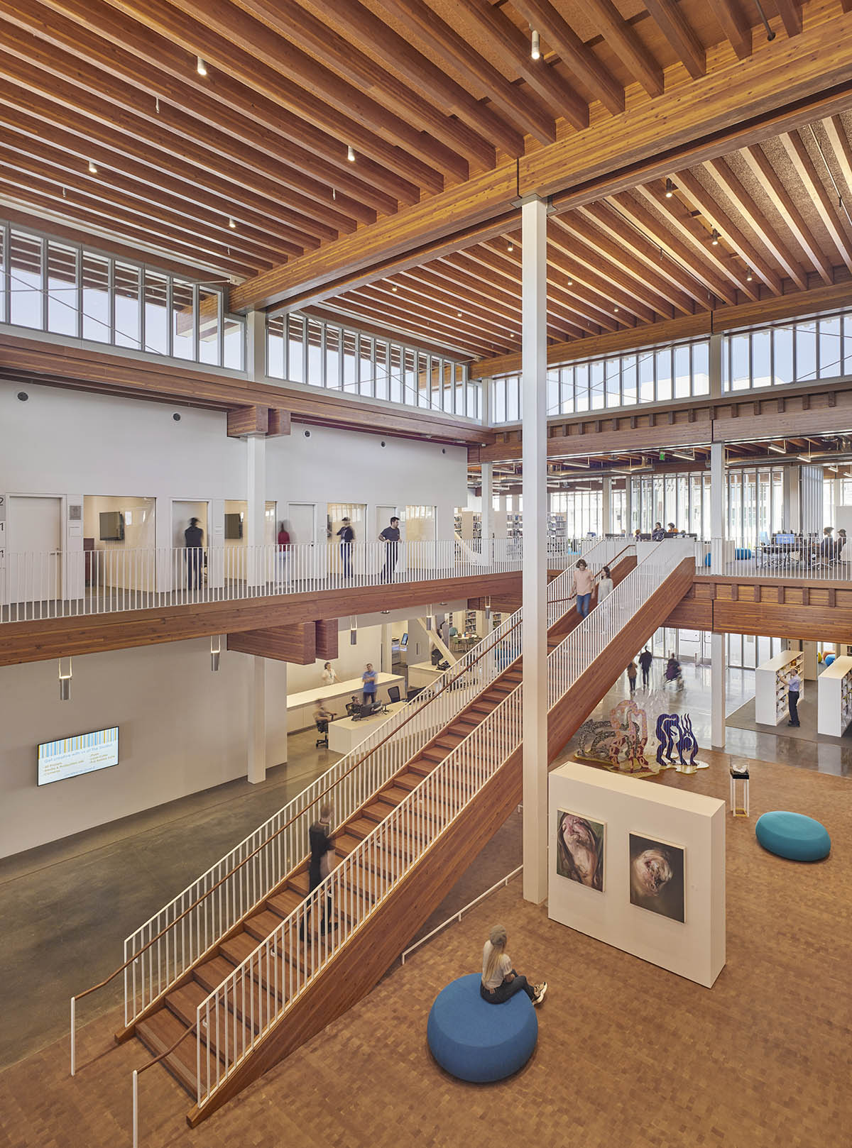 We’ve realized tremendous performance achievements on projects like the Billie Jean King Main Library in California, which through retaining most of the existing concrete garage structure allowed the design team to significantly cut down on material waste and reduce related embodied carbon emissions by 61 percent (compared with erecting a new parking garage and a conventional concrete building).
