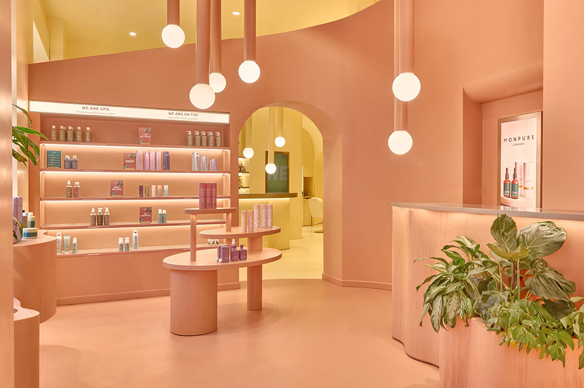 Peachy Colors Fill Interiors Of A Beauty Salon By Masquespacio In Milan