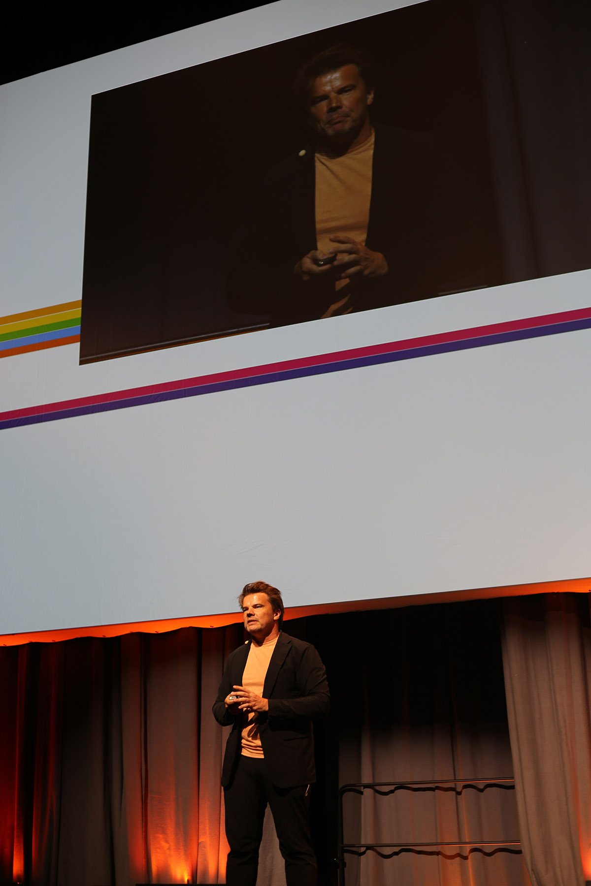 Bjarke Ingels is delivering a presentation on the stage at the Bella Center. Image courtesy of UIA World Congress of Architects 2023