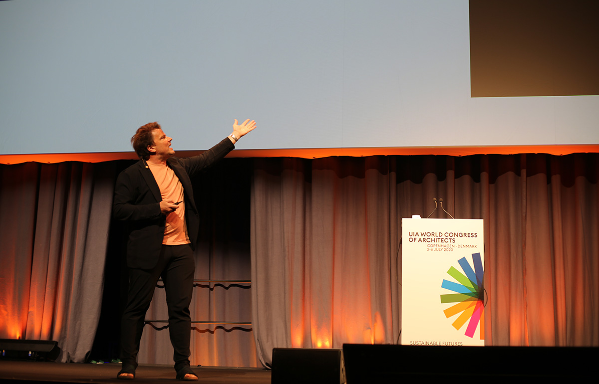Top image in the article: Bjarke Ingels on stage, courtesy of UIA World Congress of Architects 2023.