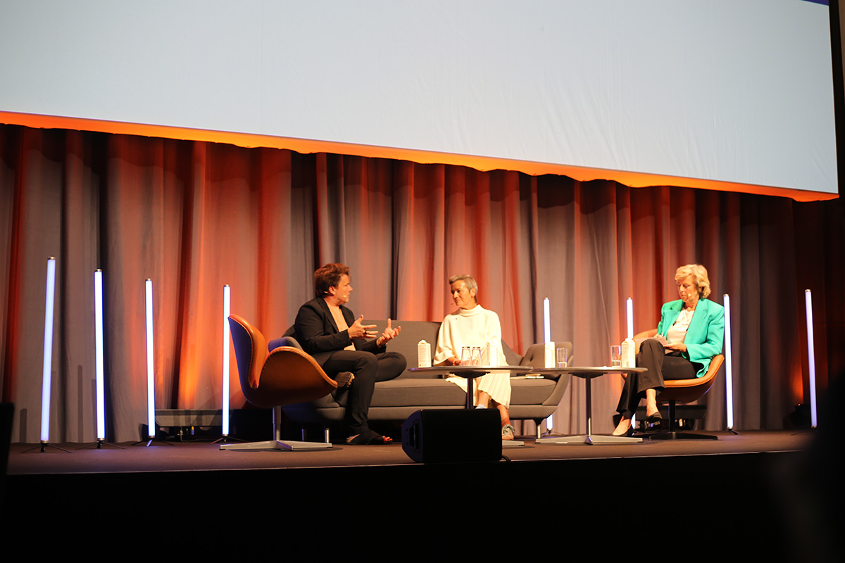 Keynote dialogue (from left to right): Bjarke Ingels, Margrethe Vestager and Connie Hedegaard. Image © Gul Kozacioglu