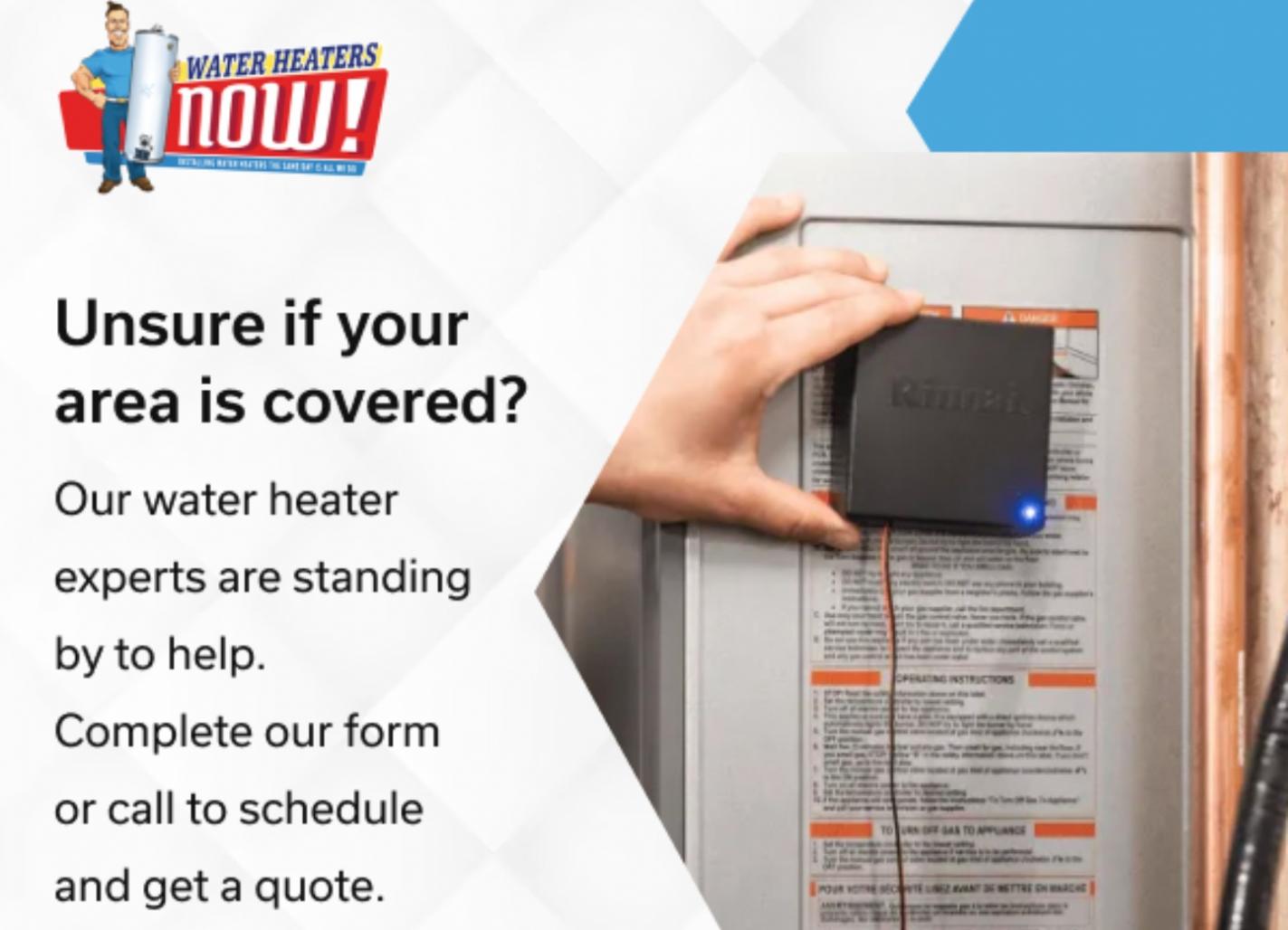 Water Heaters Now is your go-to water heater installation company for same-day service. We specialize in water heater replacement, tankless water heaters, and commercial water heaters. Our team of certified water heater specialists ensures you get the best professional-grade units for your needs. As water heater experts and a trusted heating contractor, we offer water heater services. This includes repair, maintenance, and appliance installation. Choose our energy-efficient, cost-effective water heaters for superior performance. Learn more about our services for reliable solutions from experts.