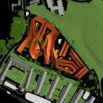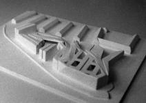 Proposal for a science park and research laboratory for Johannes Kepler University, Linz, Austria. The building form is generated from digital modelling of air movement up a hill side and optimised to facilitate through-ventilation. The building has openable glass facade, wrapped in bronze meshes of varying densities. Rapid prototyping and wind tunnel testing were deployed to maximise density whilst maintaining and enhancing air flow across the site.