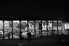 A series of proposals evolved to a single torsion volume that avoids a front and rear façade, plus it evokes the reigning geometry; more a covered plaza than a building, a sign of optimism in harsh conditions; a light in darkness…