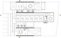 The boxes develop the program in a lineal direction, to organize the lawyer`s office, advertising’s office and the architect’s office. The experience pretends to emphasized the entranced to an interior but at the same time extend the views to the green of the landscape.