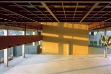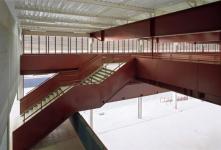 This empty space, surpassed by metallic bridges, offers a view to the landscape of Sao Paulo, where the young students of the school can see themselves in the world.