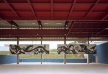 The empty cluster of the soccer field is where the school meets the city. From ground level until the roof, this empty cube acts as a public square, opened to the neighborhood during weekends and holidays. There, two great panels contain graphite artwork of the Brazilian artist Speto.