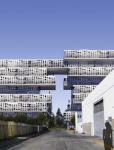 The block has a central structure made of rigid steel frame, consisting of columns and main obstacle to intersect and extend supporting the building. And the perimeter of the building is bounded by a steel structure as a secondary reinforcement, while creating a skin that covers the residential areas, while displaying a large metal monolith.