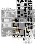 Temple Hoyne Buell Hall has been conceived and designed as the first stage of a larger complex; its fragmentary appearance bears testimony to this fact. This project assumes that the University has the means to build a structure adjacent to THBH that houses all the functions of Flagg Hall and the Architecture Building, including a library and the offices of the Dean. In this way, all of the operations of the School of Architecture that are dispersed over three buildings would be housed in one complex that would continue to function also as an environmental design unit. The additional benefits of such a situation would be the creation of an economics quadrangle and a desirable clarification of the physical and functional conditions of the south campus. The initial step to developing an addition was to thoroughly analyze the existing THBH. Temple Hoyne Buell Hall consists of three distinct forms: a longitudinal rectangular form which manifests the South Quad area, a shorter rectangular form on the north side acknowledging a major campus axis known as the ‘Military axis’, and a dominant arch on the west facade. The three forms together work as a unique system to encompass an interior atrium space. This atrium space serves as a large public gathering space and works to create a diagrammatic relationship between the two opposing functions of office along the west side and design studios to the east. The design of the Annex is a response to the office-studio adjacency within TBH by seeking to expand on the idea of using void to enhance and create a system of organized functions. In essence, the design uses a method of opening forms to enhance the interstitial and thus emphasizing the voids within the building. Yet, unlike the existing TBH, the Annex chooses to create a more circulated system of interior organization resolving the existing issues of all functions branching off one corridor. In addition, the design seeks to take advance of the arbitrary angles implied by the existing scheme and impose a new dynamic to the campus’s very organized axial grid.