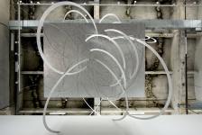 The attenuated steel legs – the ribbons - tenuously attached to floor and roof, suggested a concentric order of seats arranged around an implied center. The Moss exhibit at the Wexner implied a spatial center, and simultaneously, a center for advocates to debate, surrounded by a seated group of participants. Hyde Park at the Wexner.