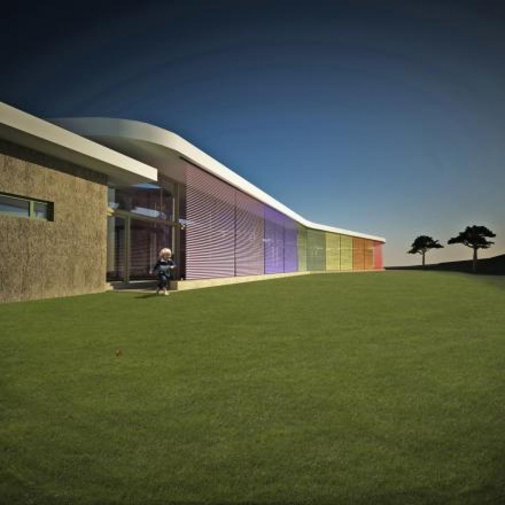 The school is a symbolic centre for the life of the children and it becomes a landmark because of the Rainbow Façade, an element for playing and a stimulus for the fantasy.